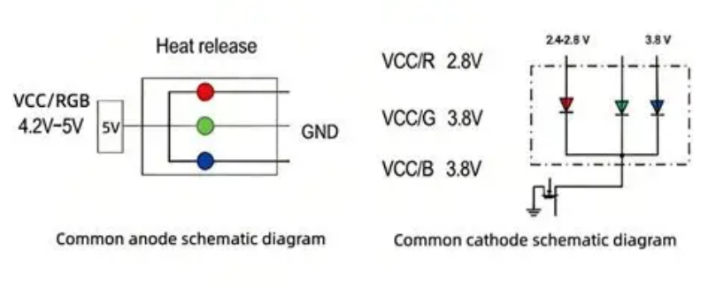 In a Common Cathode setup, the system can use dual-voltage power supplies. It sends 2.8V to the Red chip and 3.8V to the Green and Blue chips. By matching the supply to the physical needs of the LED, the energy waste is virtually eliminated.