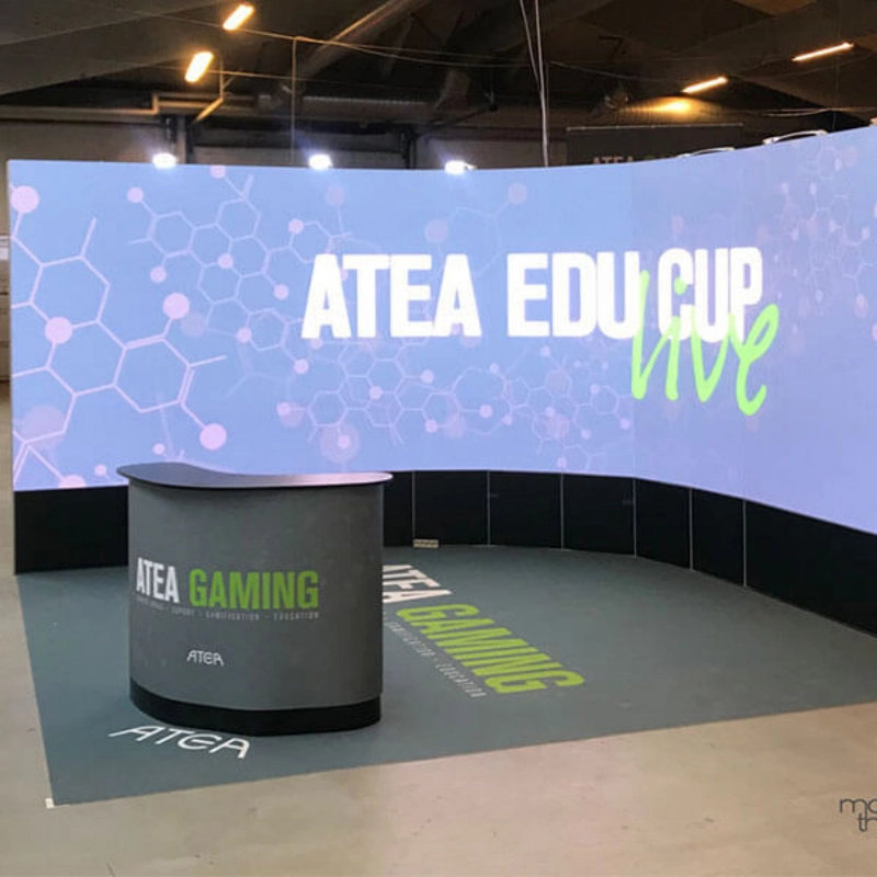 - Use: Install LED panels as the main wall of the booth, with dynamic branding or rotating messages