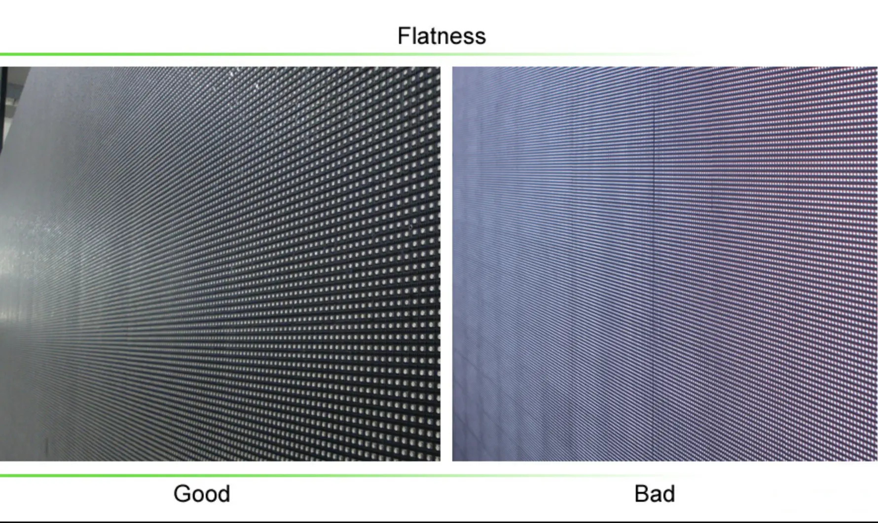 The surface flatness of the LED display should be within ± 1mm to ensure that the displayed image is not distorted. Local protrusions or indentations may cause blind spots in the viewing angle of the LED screen. The gap between modules between boxes should be within 1mm. Excessive gaps can cause clear boundaries on the display screen and visual dissonance. The quality of flatness is mainly determined by the production process.